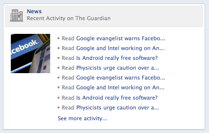 Speaking of Guardian; I would have probably missed that article if it wasn't for Guardian's new Facebook app. It's a great place to discover popular articles, and the deep social integration makes it easy to see what your friends are reading. At first glance, the fact that your friends see what you're reading may seem scary, but, once again, you have control over that.